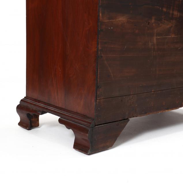 Late 18th century, poplar, white pine and yellow pine secondary, dovetailed case, rectangular top with applied molded edge, four graduated lipped drawers with full dust boards, applied molding at base, ogee bracket feet.