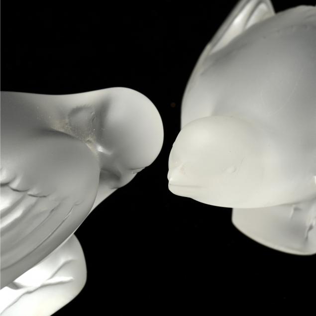 France, late 20th century, frosted and polished crystal in various poses, signed.