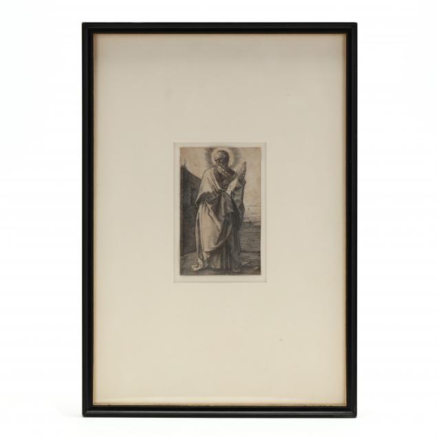 Woodcut on laid paper, original circa 1496-97, possibly printed later, with circular collector's stamp in black ink to sheet verso, frame retains Kennedy Galleries label, matted and framed. Bartsch 50; Meder 47.