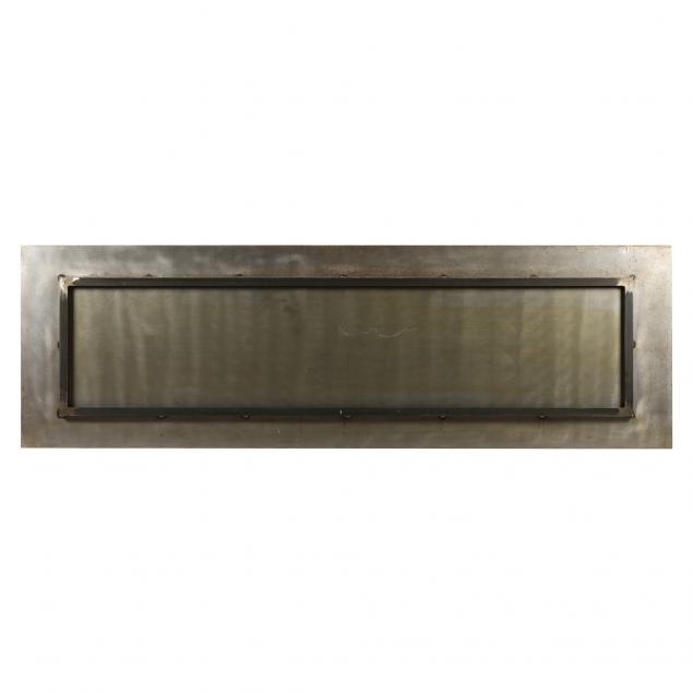 Contemporary, etched enamel paint on cradled steel panel, artist signature/ cipher to lower right, includes cleating for wall display.