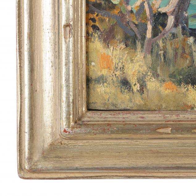 Oil on canvas, signed lower right, presented in the likely original frame with brass gallery plaque.