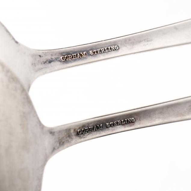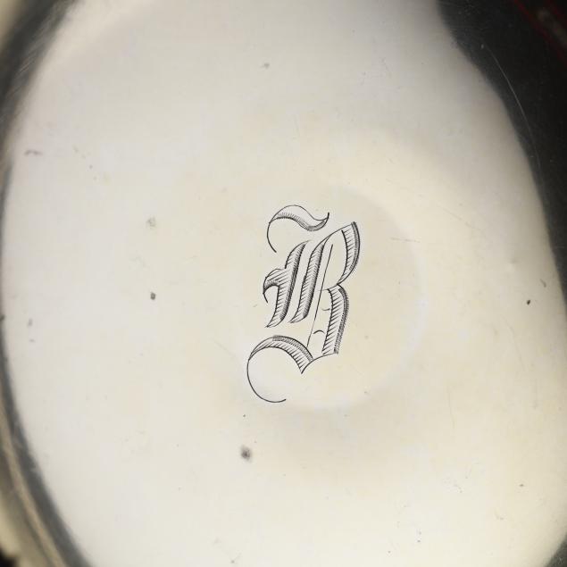 (9) pieces including: a footed compote with "B" monogram; (2) serving dishes, one with "D" monogram; a small syrup jug; a parcel gilt sugar and creamer with weighted base; a Gorham