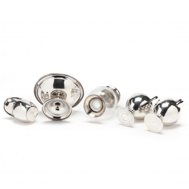 From the Estate of David R. Hayworth, Historic Home of Myrtlewood, High Point, North Carolina The syrup jug with denting; the compote with some minor denting; else good estate condition.