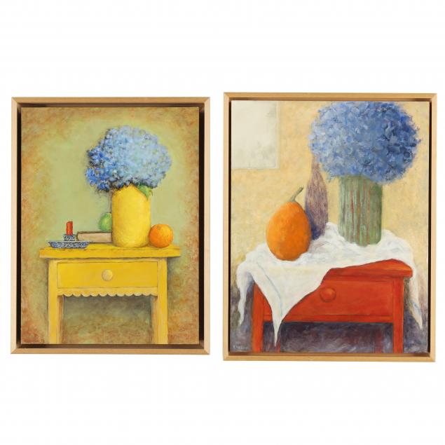 Yellow Table with blue Hydrangea (frame dimensions 14 3/4 x 11 1/2 in.); the second signed, titled to verso