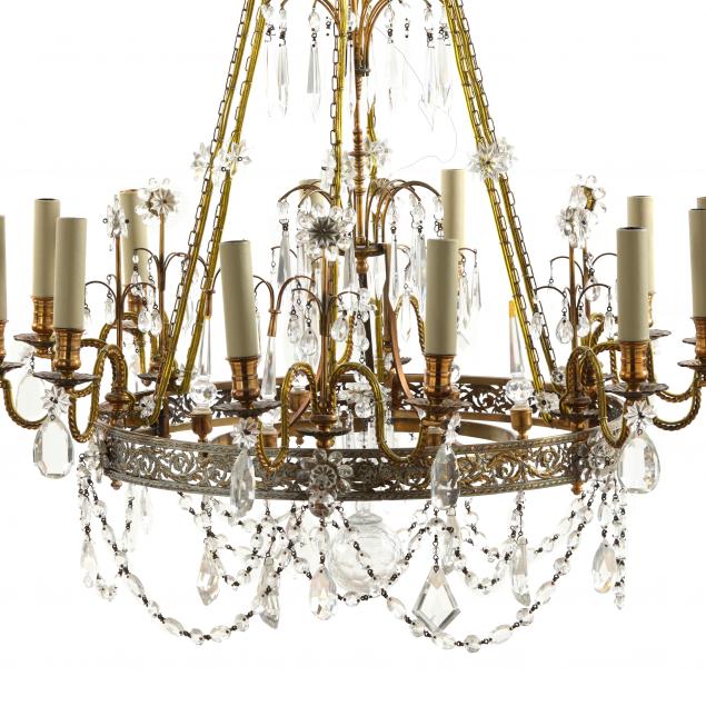 The Collection of Patricia Sharpe, Charlotte, North Carolina Modern wiring and in working order at the time of consignment; two of the interior spires missing their brass/prism mounts; some white verdigris throughout.