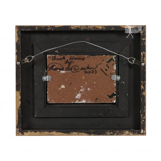 Oil on board, signed at lower left, inscribed to verso, presented in a contemporary gilt frame.