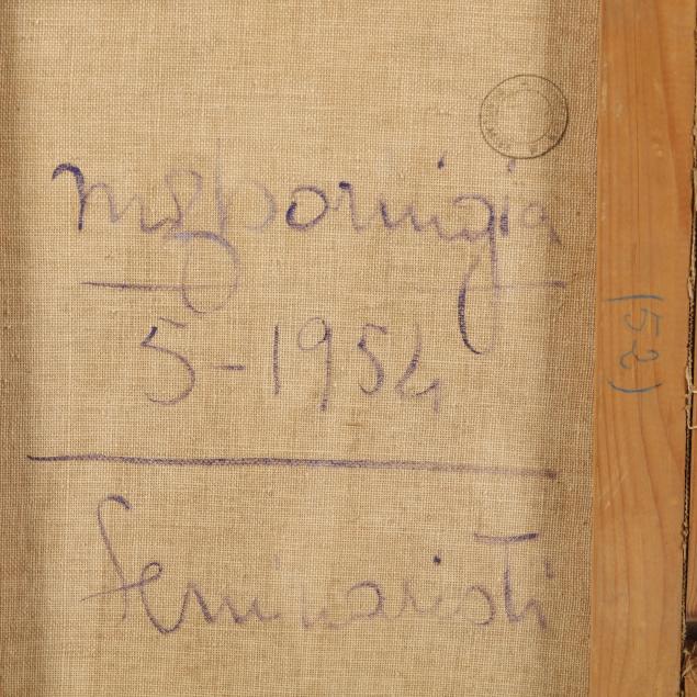 Oil on canvas, signed and dated 1954 at lower left, inscribed to verso, framed.