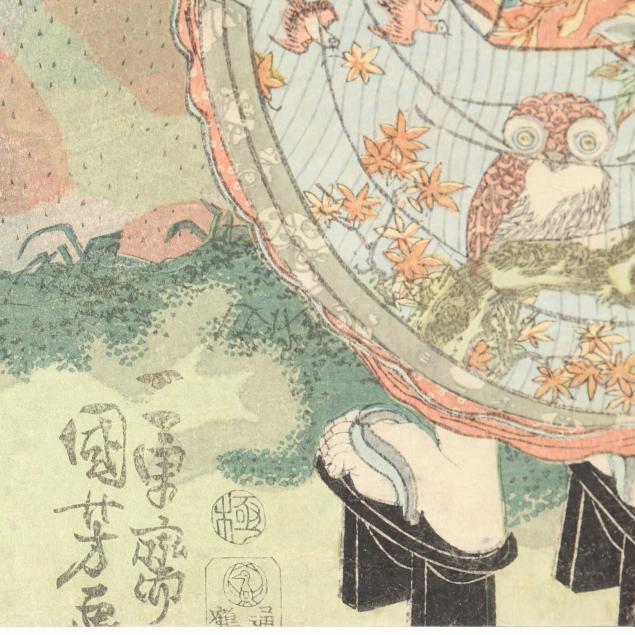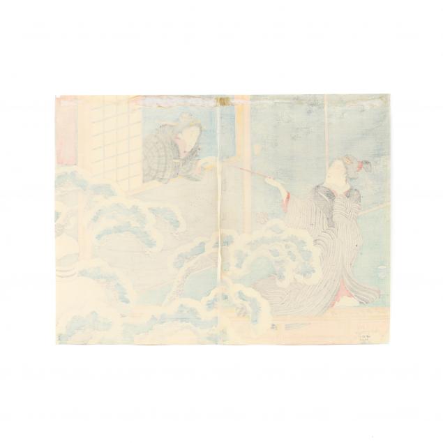 Edo period (1615-1868), ink and colors on paper, includes five woodblock prints from three different triptychs by Kuniyoshi, presented loose.