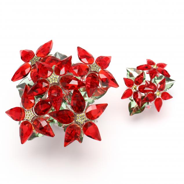Proceeds to benefit Carol Woods Charitable Fund The larger with one green leaf having a tiny flea bite chip to the underside of the leaf; the smaller with a minuscule flea bite chip to the base edge of the pot; overall good condition.