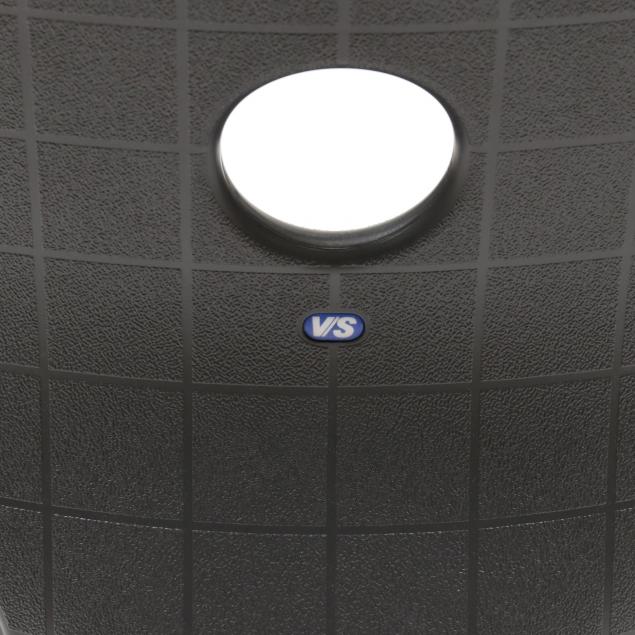 VS Moebel, Germany, black shell seat with circular cut-out crest, grid pattern, polished steel cantilevered legs with black cap feet, labeled and marked.