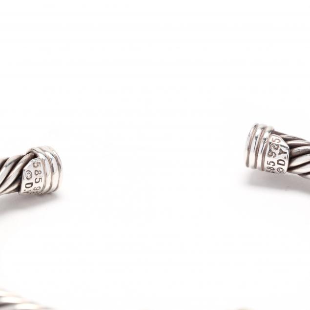 The sterling silver cable cuff bracelet with a bezel set cushion cut faceted blue topaz accented with yellow gold fluted details to each side, stamped 925 / 585 and with maker's mark.