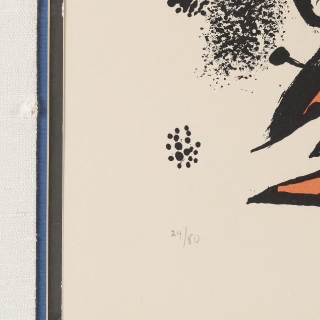 Lithograph in colors, 1976, pencil signed at lower right and erroneously numbered 24/80 at lower left (Mourlot cites an edition of 75), printed by Maeght, Paris, published by XXe Siècle, Paris, matted and framed.