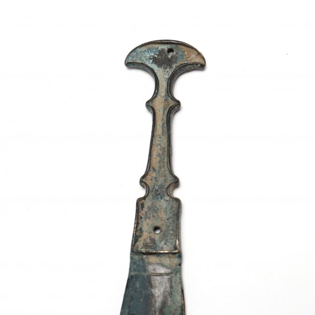 Private Collection of an Antiquarian, Charlotte, North Carolina Solid metal, though improper cleaning has given a bluish tinge to the patina; two spots of modern glue to one side from mounting in a display.