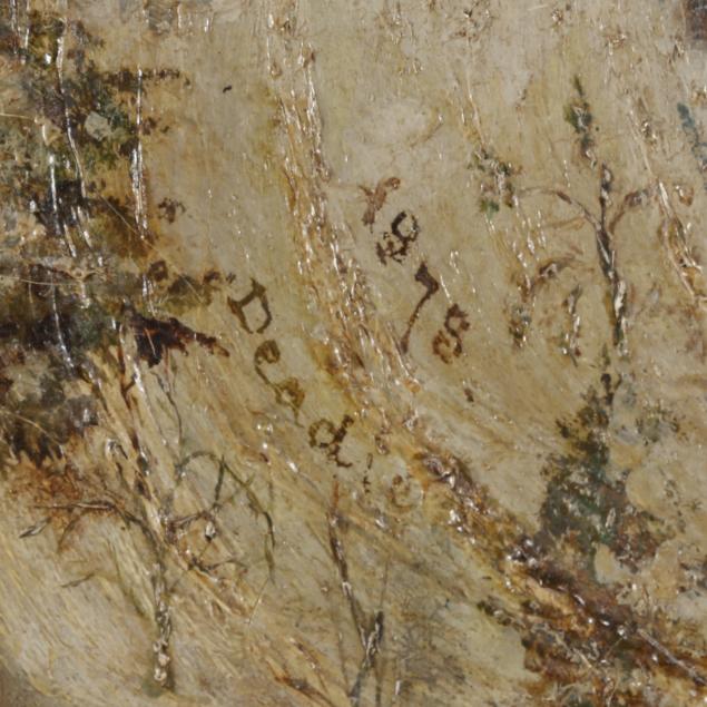 Oil on canvas, signed and dated "1878 / Deadles" at lower left, painted in an oval and presented in the original gilt frame with ebonized liner.