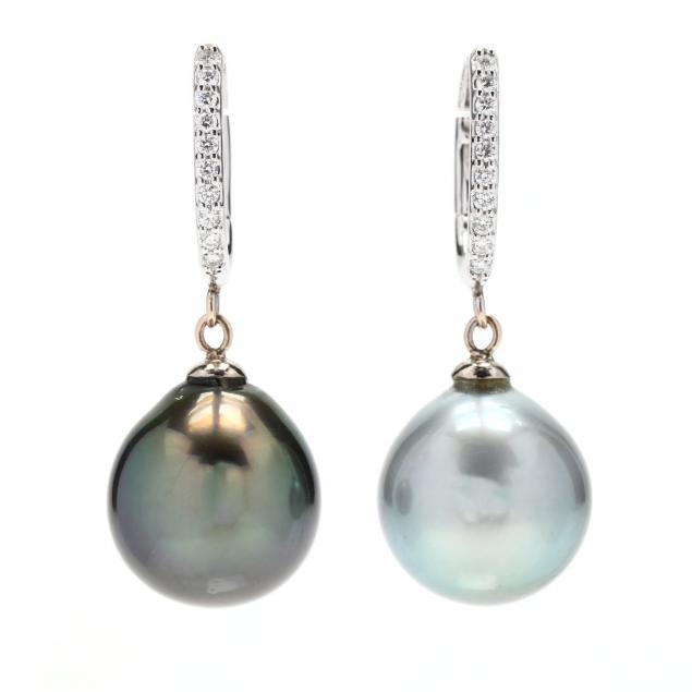 White Gold, Diamond, and Tahitian Pearl Earrings