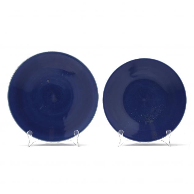 19th century, various sized dishes with monochrome cobalt blue glaze, white pitted glaze to underside foot.