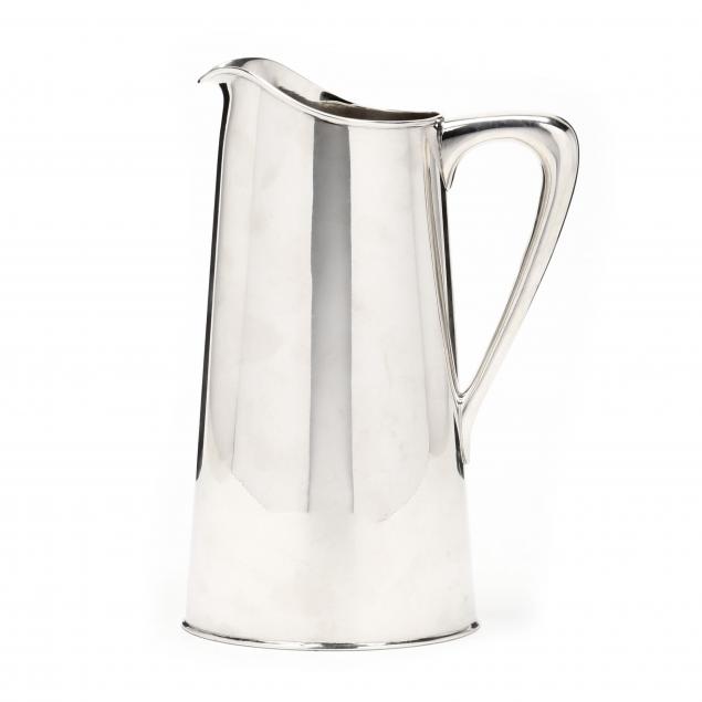 First quarter 20th century, modern tapering oval form with angled handle, with unknown maker's mark "B (Lions Head) M / Sterling / Hand-Made" to underside, without monogram.