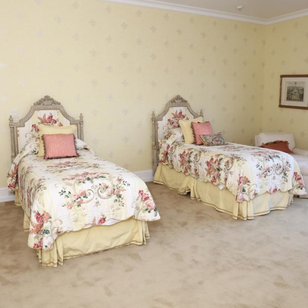The Estate of the late Frank Daniels, Jr. and his wife Julia Jones Daniels, Raleigh, North Carolina. A portion of the sale proceeds will be donated to the North Carolina Museum of History Foundation Late upholstery to headboard; paint wear and losses to headboard frame; headboard currently attached to metal frame.