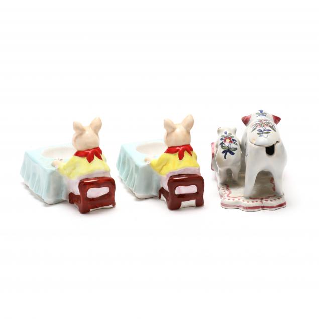 Contemporary, including (2) egg holders labeled Elizabethan Staffordshire, hand-painted (3.5 x 3 x 4.5 in.), a faience glazed lidded toothpick holder, signed "Hand-painted in France for Tiffany and Co."