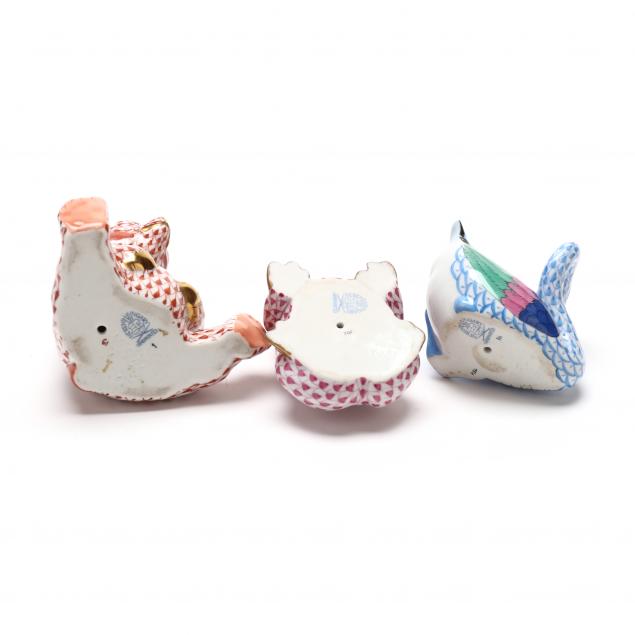 20th century, including a pair of blue ducks, blue swan, blue standing duck, a rust colored seated bear and a raspberry toad, all marked.