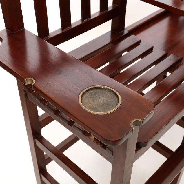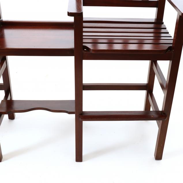 The Estate of the late Frank Daniels, Jr. and his wife Julia Jones Daniels, Raleigh, North Carolina. A portion of the sale proceeds will be donated to the North Carolina Museum of History Foundation Felt in good condition with some light scuffing; legs and table frame with some wear from use; chair with one detached seat slat (but present).