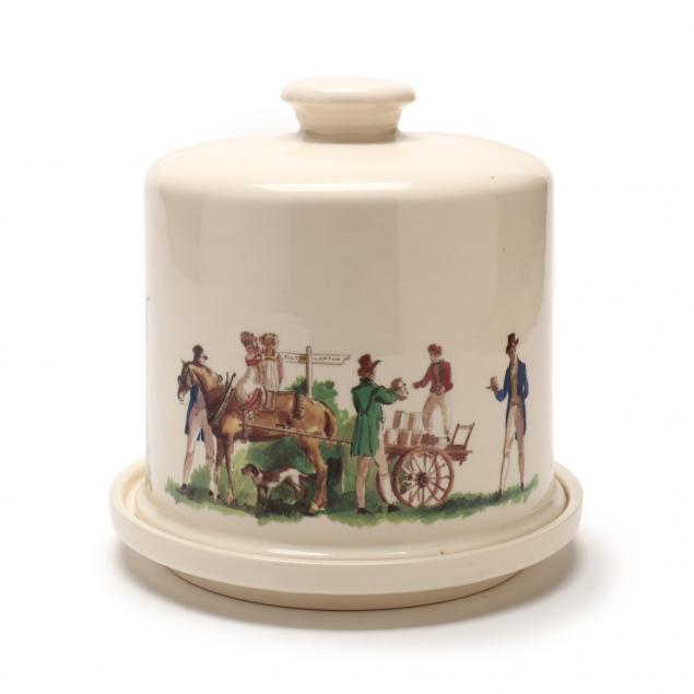 20th century, including majolica lidded cheese dome with leaf and branch motif, unmarked (7 x 11 in. diameter); transfer decorated cheese dish and biscuit jar by Fortum & Mason, England, both marked (8 x 8 1/4 in. diameter largest).