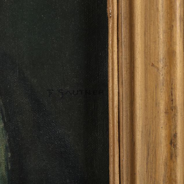 Oil on canvas, early 20th century, signed "F. Sautner" at right, in gilt frame.