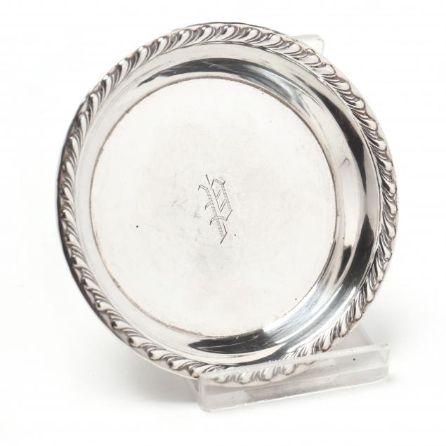 (19) pieces including: a tray with mark of Frank Smith Silver Co., monogrammed (9 x 6 in.) (good estate condition); the second a pair of salt & pepper shakers in the 18th century style with mark of Towle (good estate condition); a creamer & sugar set with mark of Elgin Silversmith Co., monogrammed (scattered denting); a pair of salt & pepper shakers with unidentified mark (scattered denting); two low candlesticks with weighted bases (the large with damage to base); a set of four ashtrays, monogrammed, worn manufacturer's mark; a pair of three-light convertible candelabra (one with damage to central candle cup, both with might denting to weighted bases); and a set of glass coasters with silverplate collars, mark of Leonard Silverplate Co.