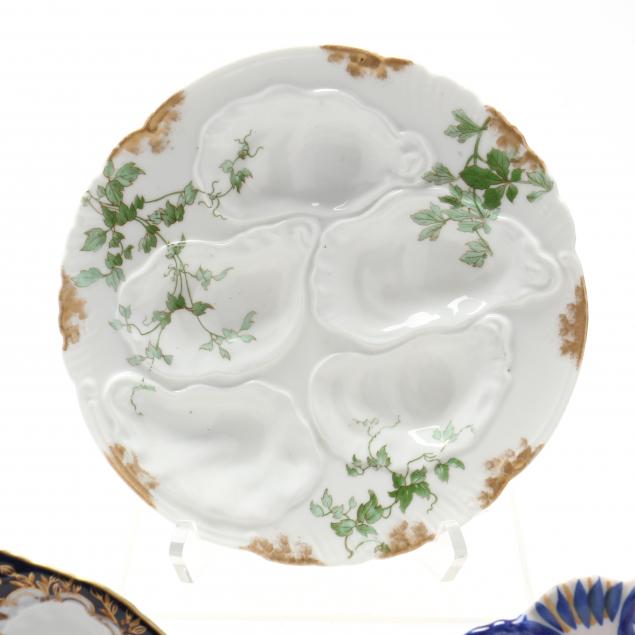 Late 19th-20th century, including (1) with Limoges back stamp, (1) with faux Limoges stamp; (1) stamped Austria, a Quimper plate, and the 5th not marked.