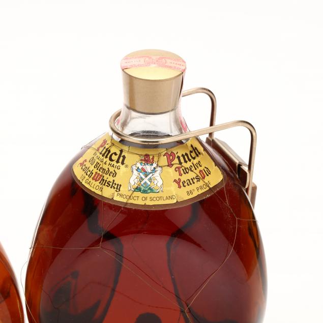 NV, Haig & Haig 12 Years Old Blended Scotch Whisky, Markinch, Scotland, 43%, thought to be late 1960s bottling, hs, sealed pinched bottle with metal holder attached (1 1/2 Gallon)