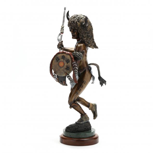 From the Collection of Drs. Norman and Gilda Greenberg, Durham, North Carolina Based in New Mexico, Ralph Roybal began his career at the Santa Fe Foundry and the Dell Weston Studio Foundry, and continued his passion for sculpture under the guidance of Ernest Berke (1921-2010). Like Berke, Roybal specializes in expressive Native American theme figural sculpture, but with his own distinctive polychrome patinas.