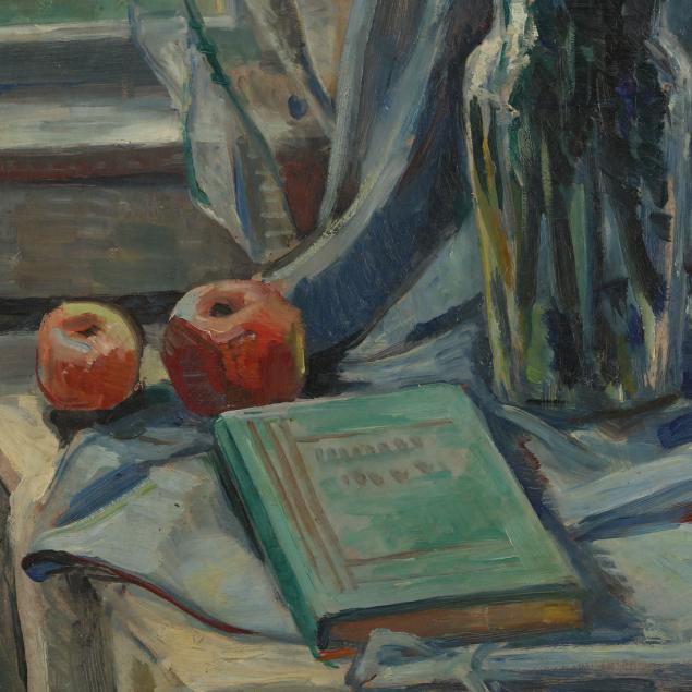 Oil on Masonite, signed with the artist's initials at lower right, with the artist's estate stamp to verso, presented in a period frame.