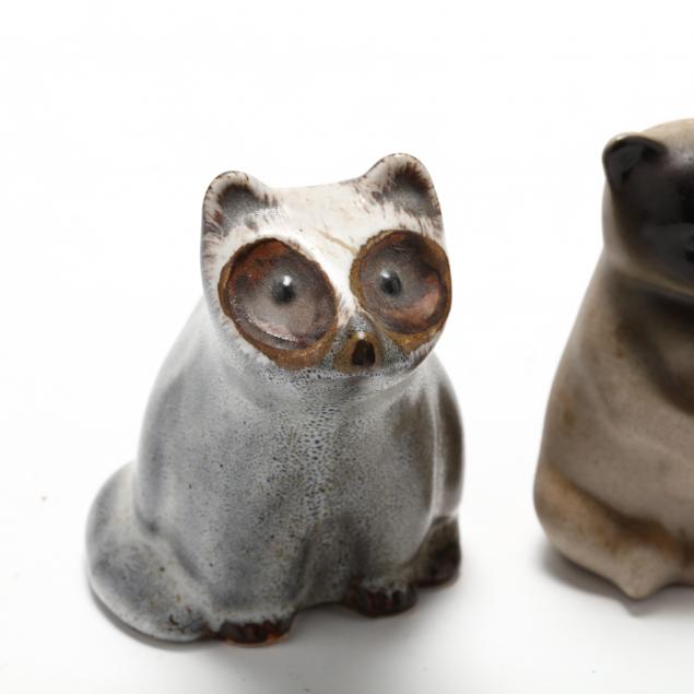 Stoneware: a raccoon, a double bear, a small black bear, all inscribed on the underside.