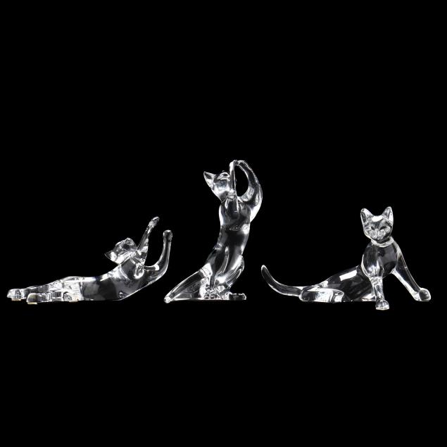 Three Baccarat Crystal Cat Figures
