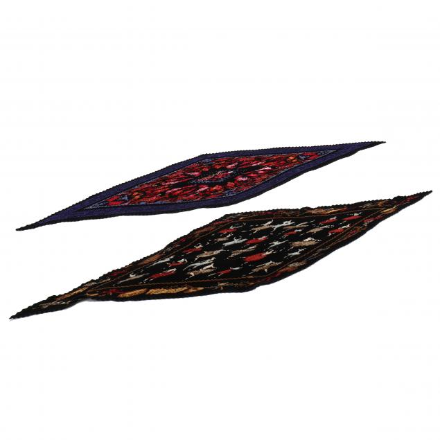 La Danse Ballerina, a rare vintage scarf designed by Jean-Louis Cierc, with box, the second is a design centered with a Colonial couple surrounded by a colorful parade of animal and birds, with box.