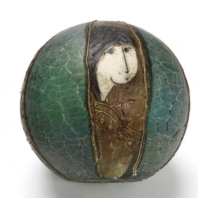 From the Estate of the late Linda Kornberg, Chapel Hill, North Carolina Stephen White is an acclaimed artist living and practicing in Chapel Hill, North Carolina. He is known for his textured paintings with gilt highlights that are inspired by ancient Byzantine techniques and Asian influences. White’s favorite model, a woman named Marian, has been the muse for the stylized female figures often depicted in White’s work throughout his career.