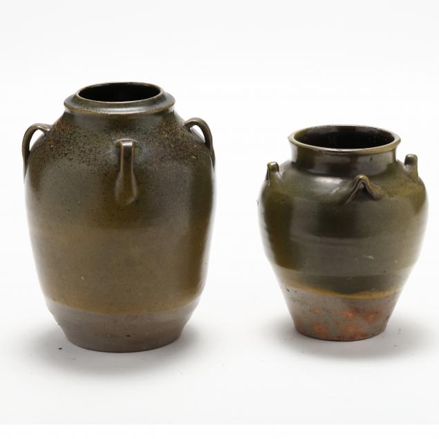 Jugtown Pottery (Seagrove, NC), Two Frogskin Glazed Jars