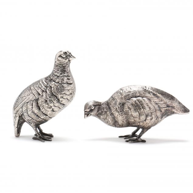 Pair of Italian Silverplate Partridge Table Ornaments