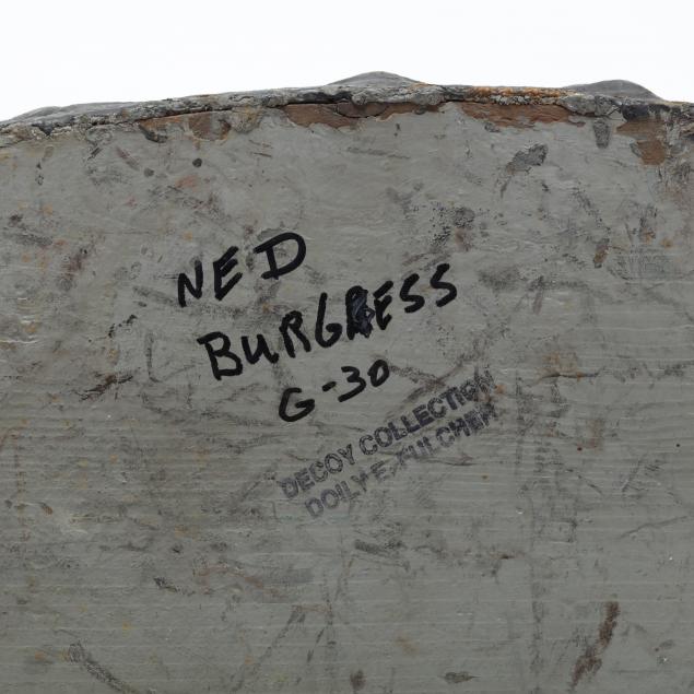 Ned Burgess is arguably North Carolina's most prolific and celebrated decoy carver. His canvas geese have the best form of all the Carolina makers.They have curved, well proportioned necks and the bill is doweled to the head.