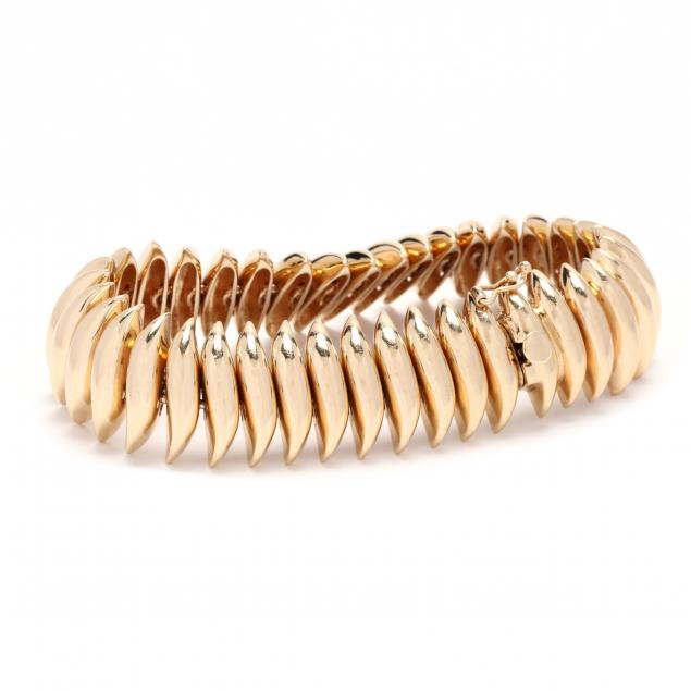 Bracelet comprised of solid S gold links and completed with an integrated clasp, stamped 14K.
