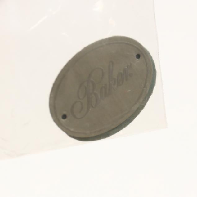 Two metal Baker labels included (but loose); later upholstery; overall good usable condition.