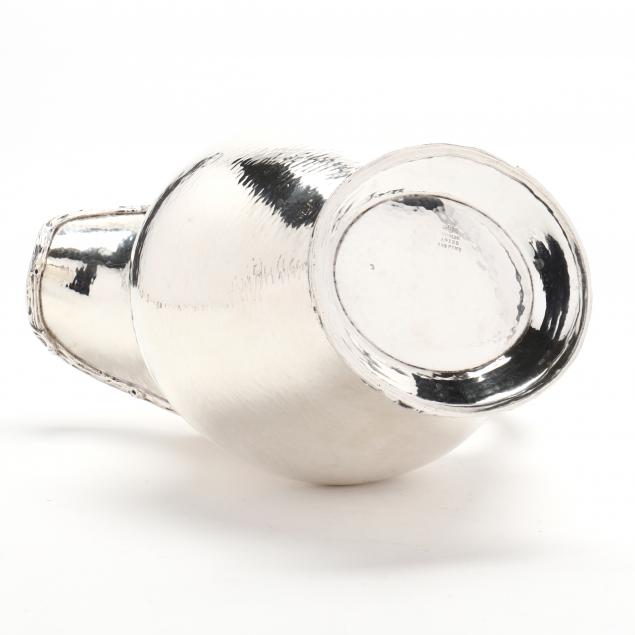 20th century, pattern number A9129, urn form with hammered finish, grapevine cast handle, vine molded rim and base, without monogram.