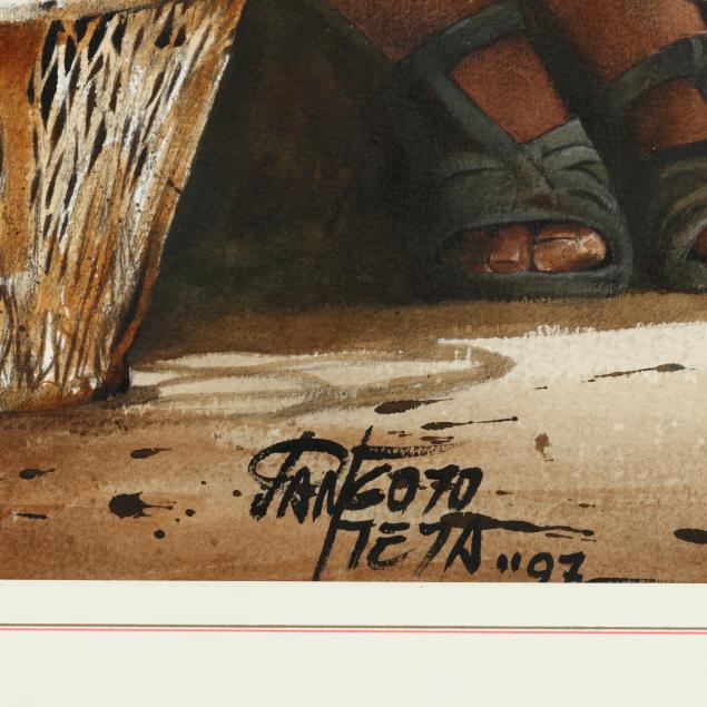 Ink and watercolor on paper, 2002, signed and dated at lower right, matted and framed under UV glass.