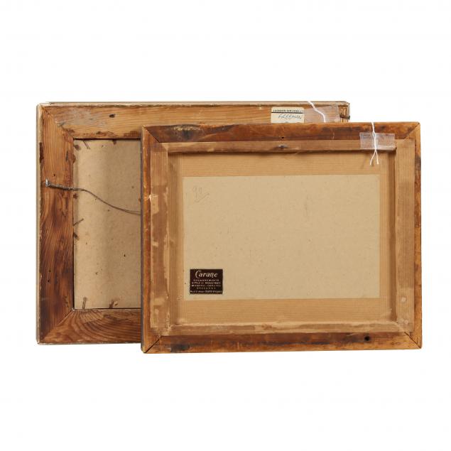 The first an oil on paper laid on board, English school, mid-19th century, unsigned, presented in a gilt frame (Frame dimensions 11 x 14 in.) (very grimy, loss to frame); the second a watercolor on paper, French school, unsigned, mid-20th century, matted and framed under glass (Frame dimensions 10 1/4 x 12 1/2 in.) (some toning to sheet, minor rubbing to frame, not examined out of the frame).