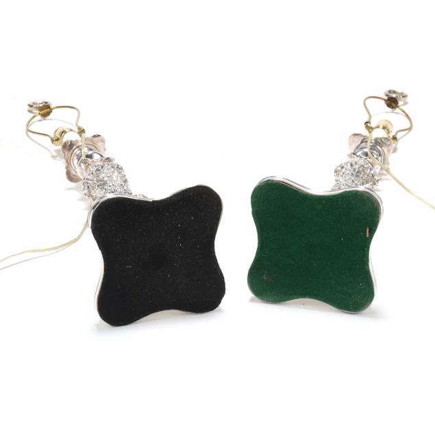 Some nicks to bases and minor denting to bobeches; minor bleed to plate; overall good estate condition.