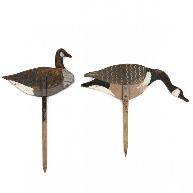 Charlie Warren Garrish, Jr became quite well known for his skill in guiding hunters for geese and other waterfowl. He made at least one rig of stake up silhouette geese for hunting the marsh edges. This pair has wonderful paint on animated forms.