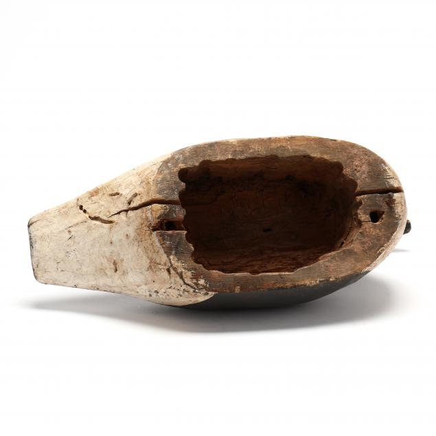 The body is hollowed out from the bottom. It is reported that some of his decoys were hollowed so extra birds could be stored in the cavity.