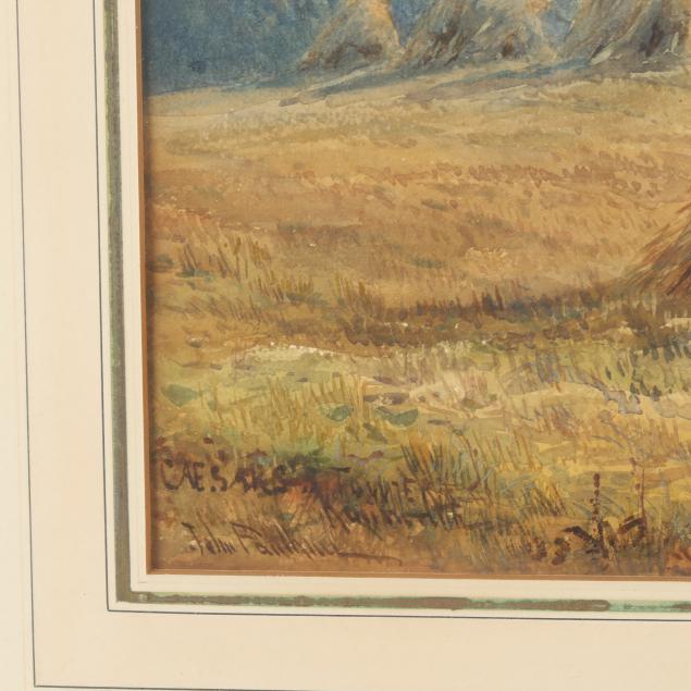 Private Collection, Brooklyn, New York Dublin-born artist John Faulker studied drawing and painting at the Royal Dublin Society School, leading him to an exhibition at the Royal Hibernian Academy in 1852, when he was only 17 years old. He became an elected RHA academician at the age of 26, and exhibited a the Royal Academy in London. He was well known for his soft watercolor paintings of Irish and Scottish landscapes, though he painted in oils as well.