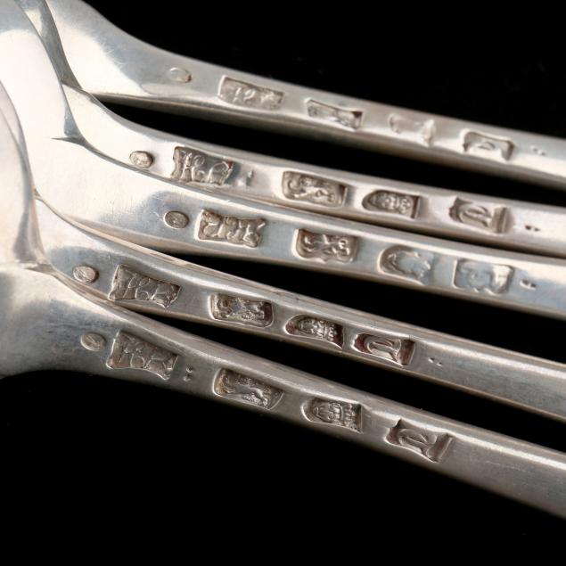 Includes (5) with London (1774) hallmarks, having armorial crest engraving to handle, and (1) with London (1789) hallmarks, without monogram.