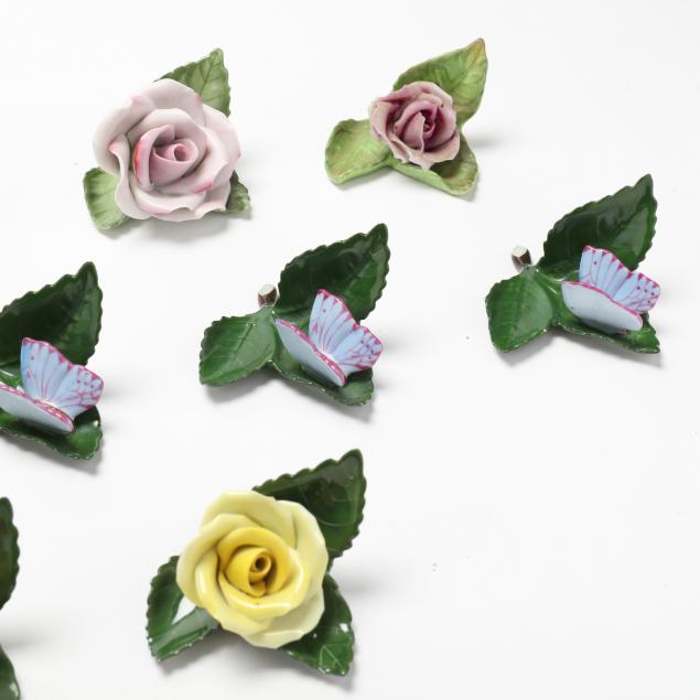 Napkin rings #270 and flower and butterfly card holders, all with backstamps.
